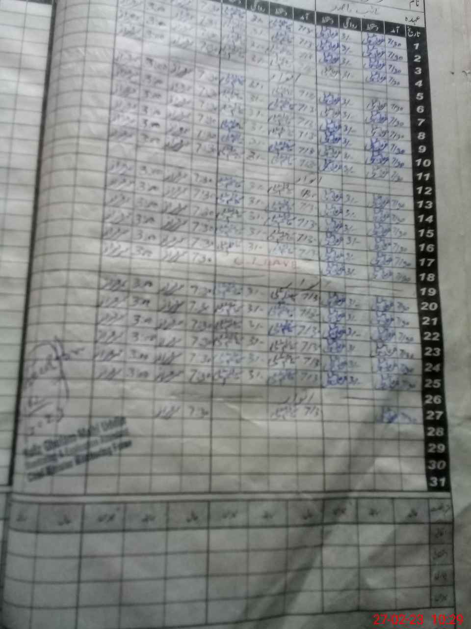 | CNIC | Full Name | Designation | R/C | Absence During Last Calender Month |