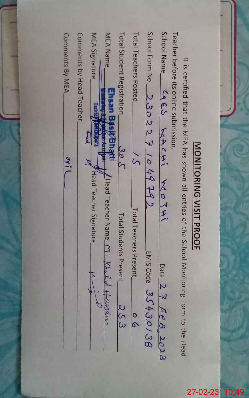 | EMIS Code: 35430138 | Name of School: GES KACHI KOTHI | |||