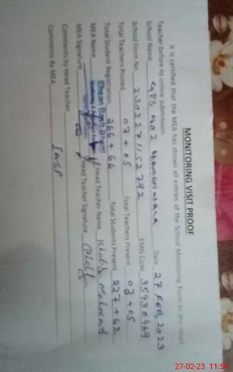 | EMIS Code: 35430469 | Name of School: GPS NO. 2 MANANWALA | |||