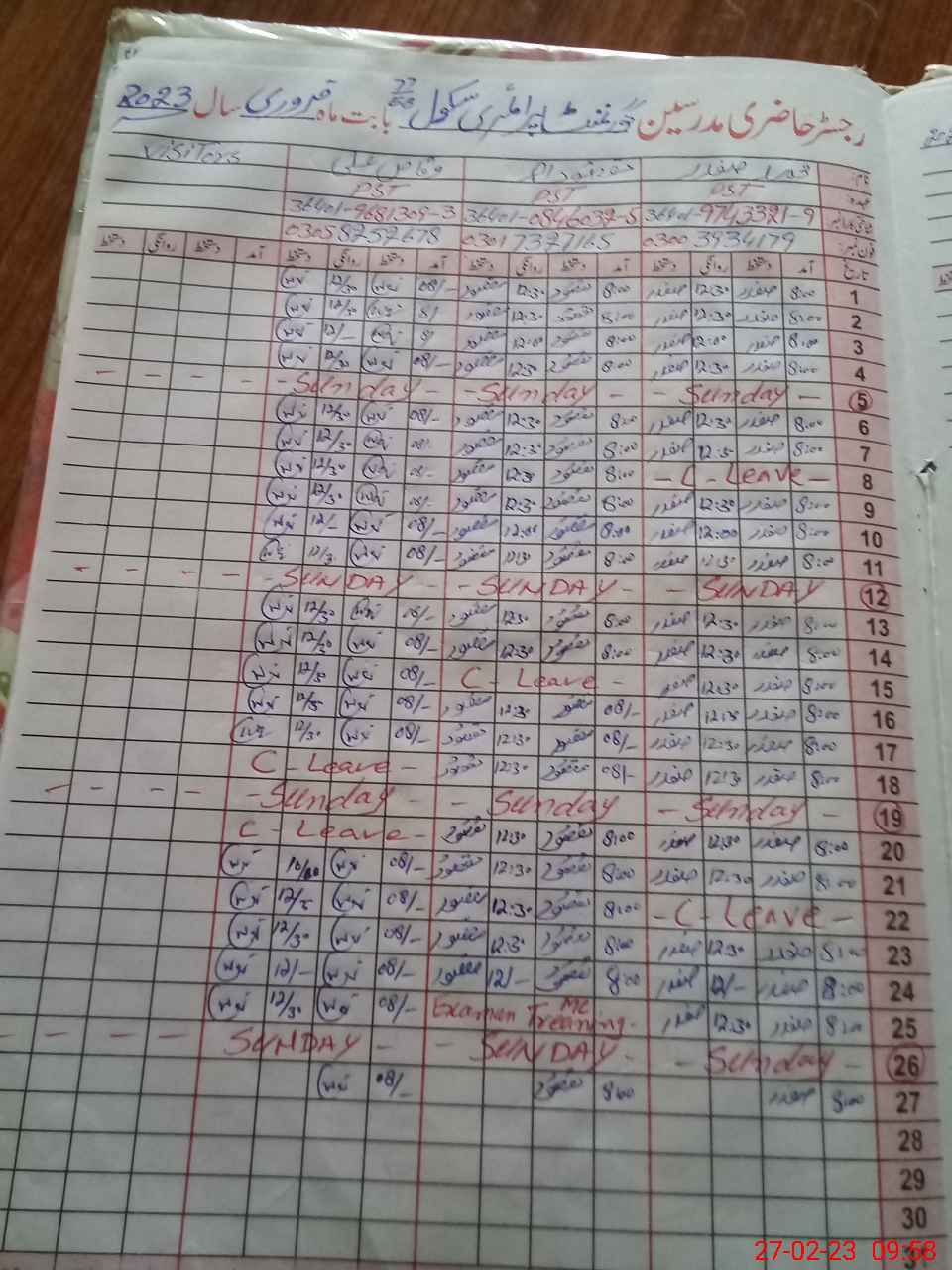 | CNIC | Full Name | Designation | R/C | Absence During Last Calender Month |