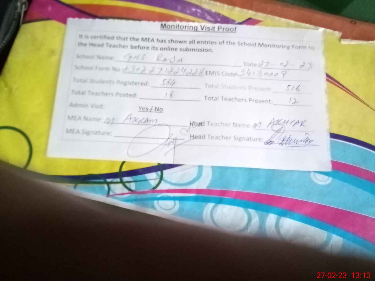 | EMIS Code: 34130009 | Name of School: GHS RAJA | |||