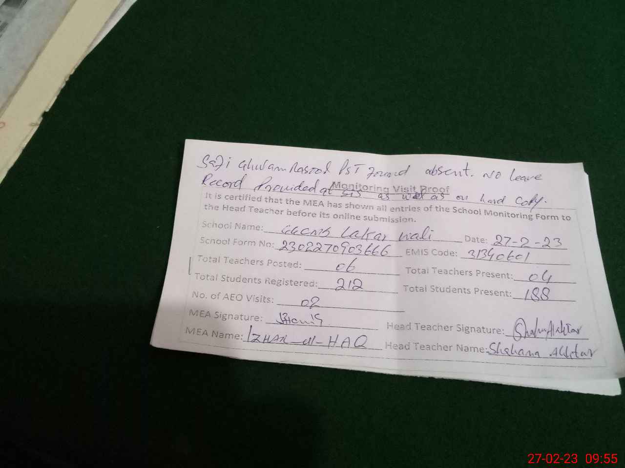 | EMIS Code: 31340601 | Name of School: GGCMS LAKAR WALI | |||