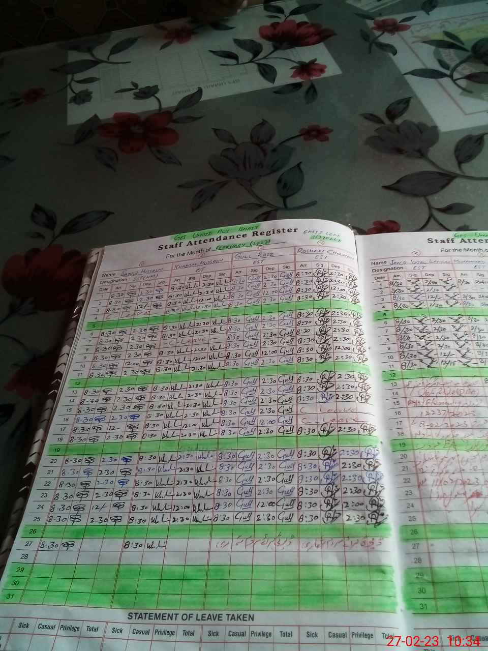 | CNIC | Full Name | Designation | R/C | Absence During Last Calender Month |