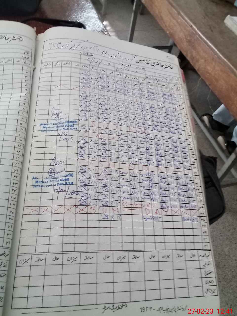 | CNIC | Full Name | Designation | R/C | Absence During Last Calender Month |