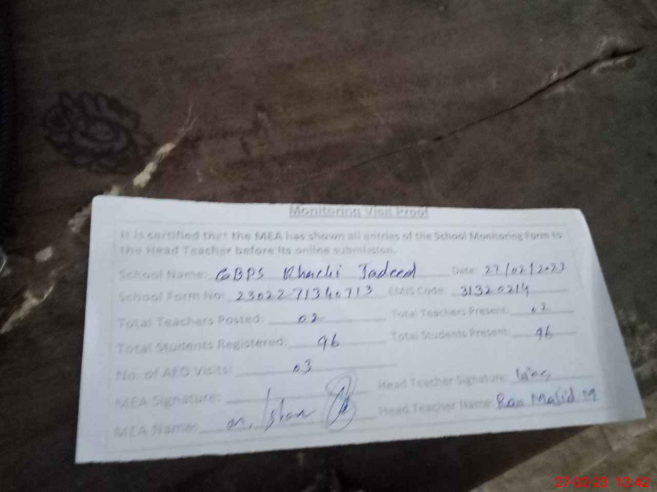 | EMIS Code: 31320214 | Name of School: GPS KHACHI JADEED | |||