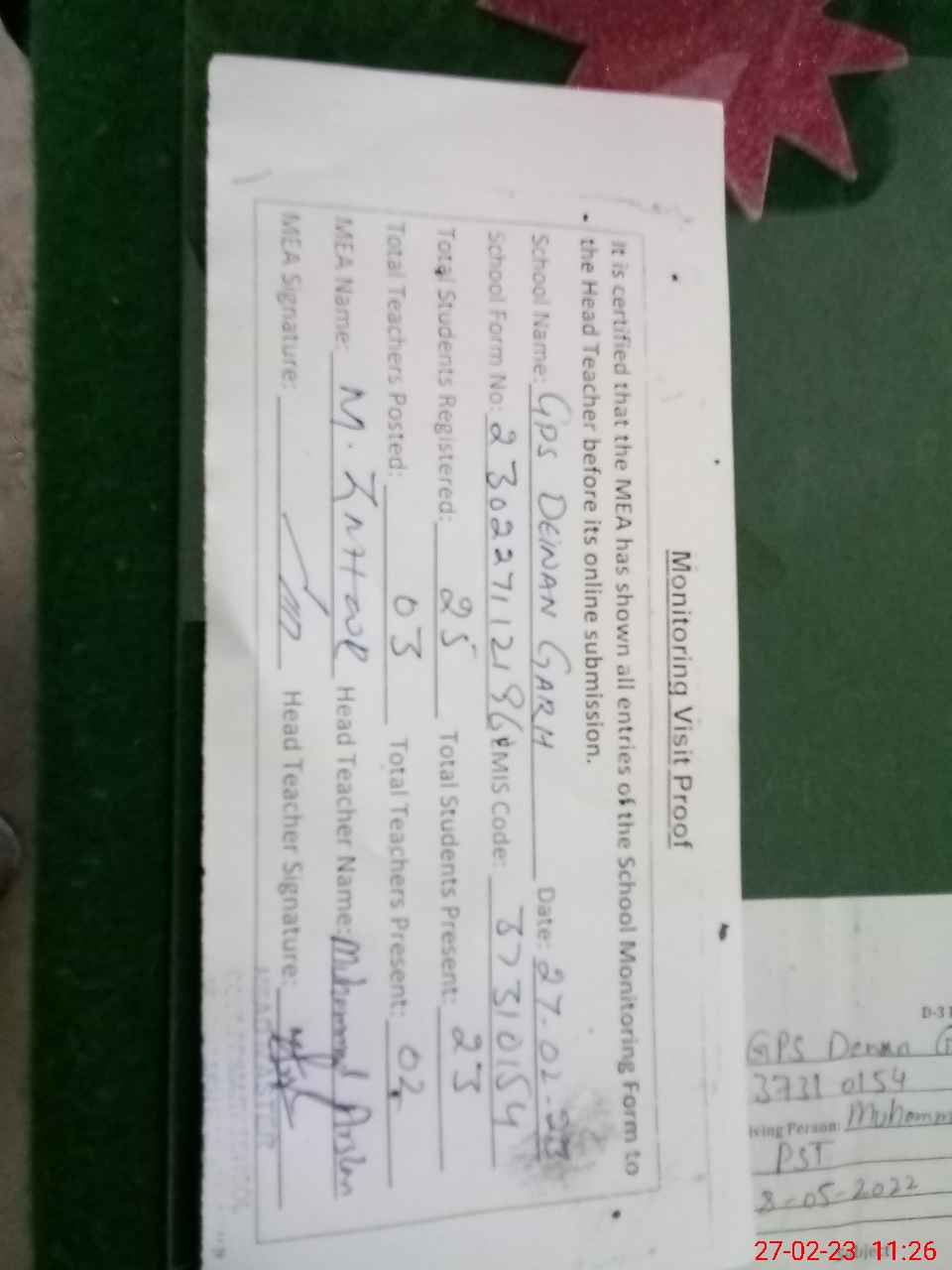 | EMIS Code: 37310154 | Name of School: GPS DEWAN GARH | |||