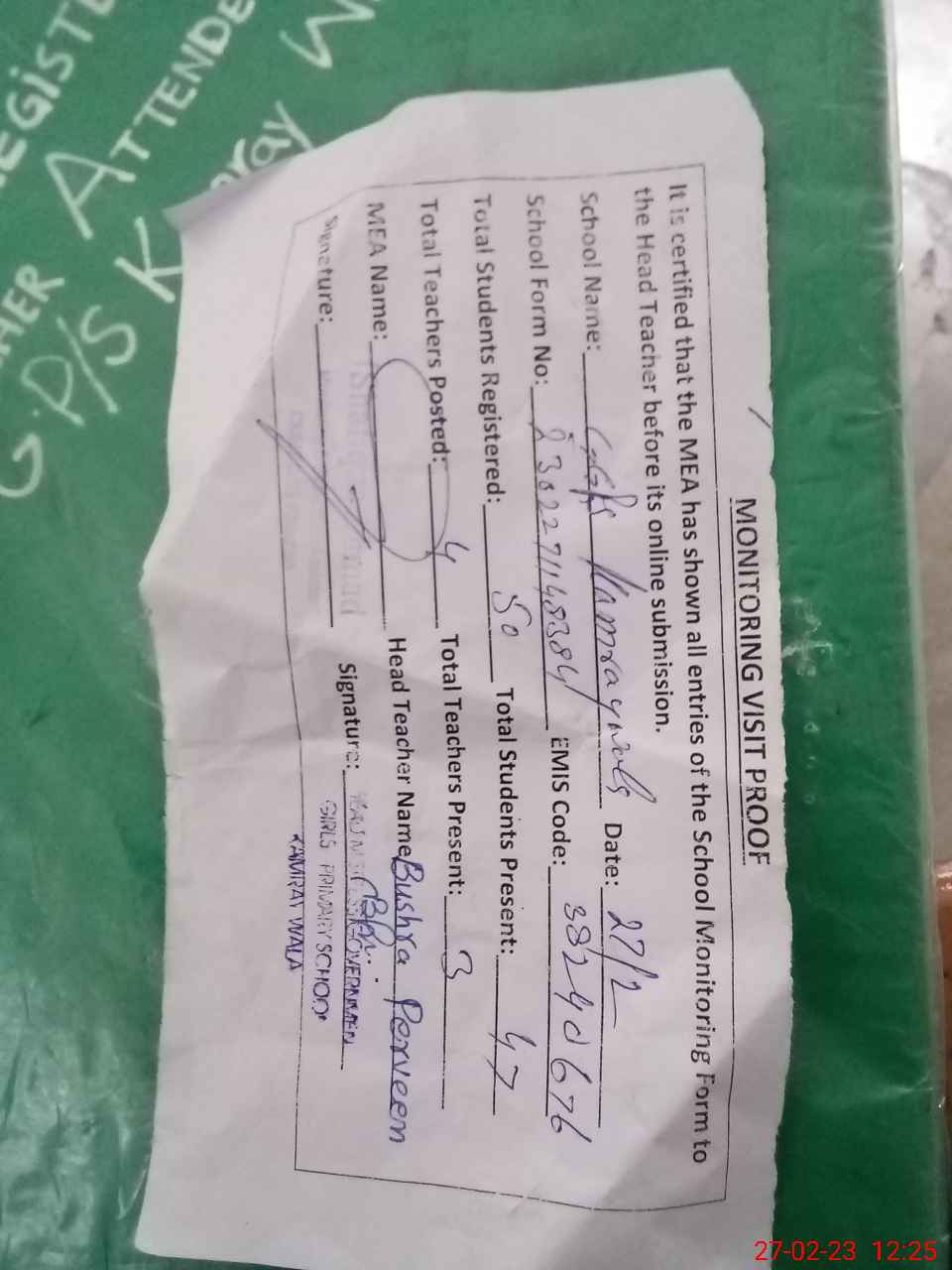 | EMIS Code: 38240676 | Name of School: GGPS KAMRAY WALA | |||
