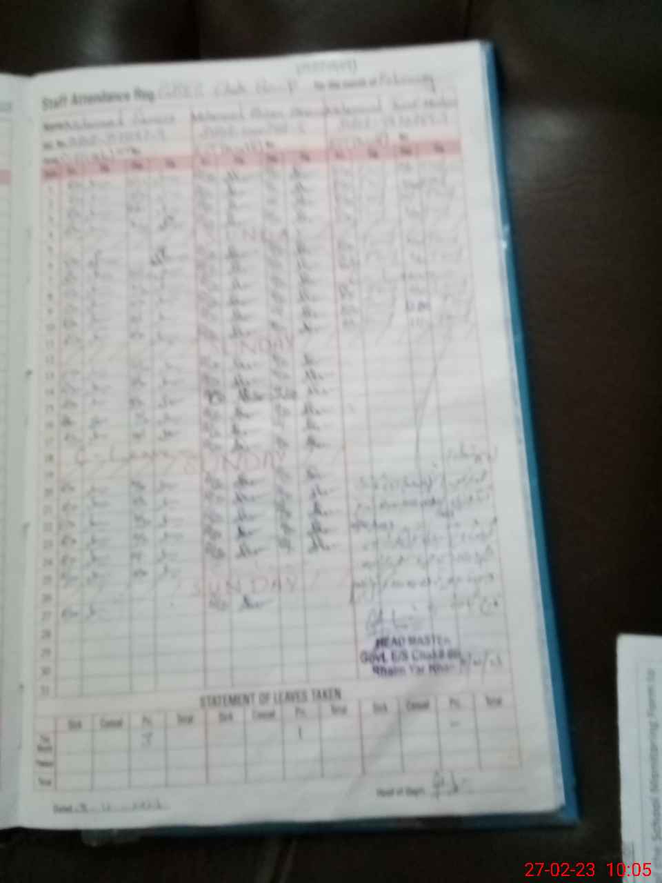 | Attendance Register | Head Teacher | MEA with School | Visit Proof |