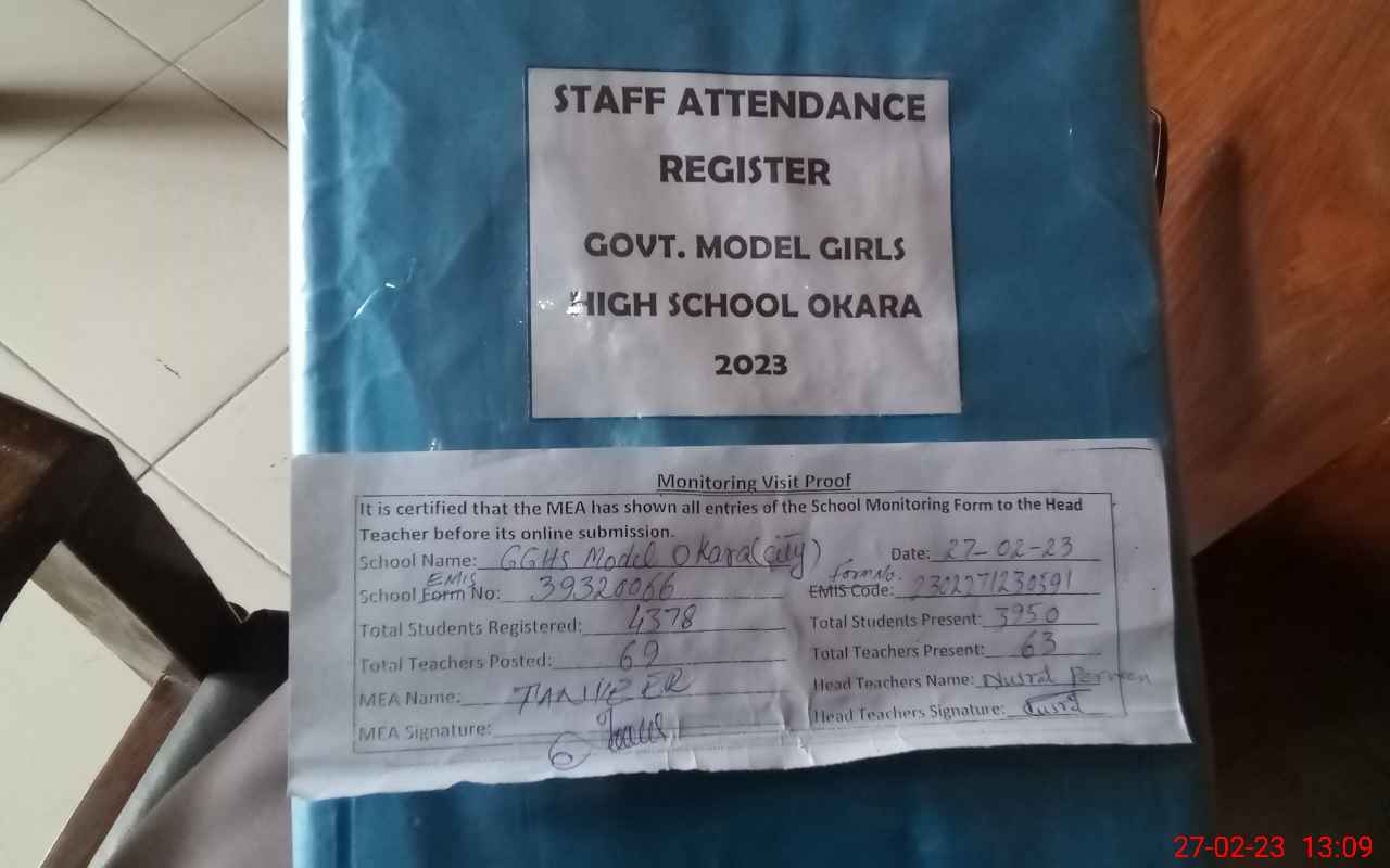 | EMIS Code: 39320066 | Name of School: GGHS MODEL OKARA CITY | |||