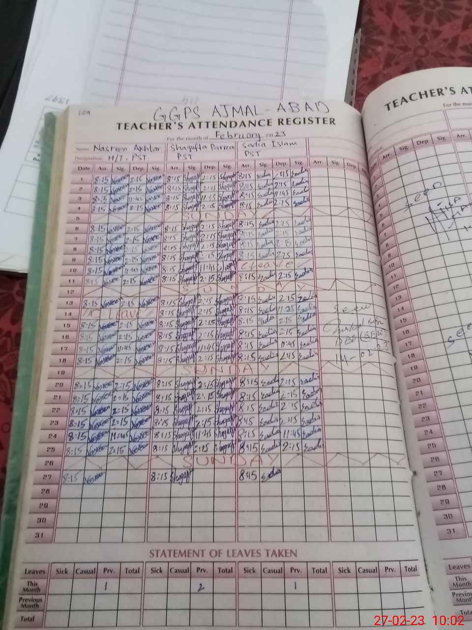 | Monitoring Date: 27-02-2023 | Start Time: 27-02-2023 09:34 AM | End Time: 27-02-2023 10:05 AM | Name of MEA: Mu**** Ak**** | |