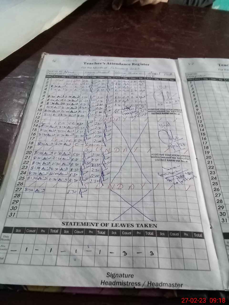 | Name: M.**** Designation: (School Headmaster's/Headmistress's) PST Phone/Cell Number: 03**** |