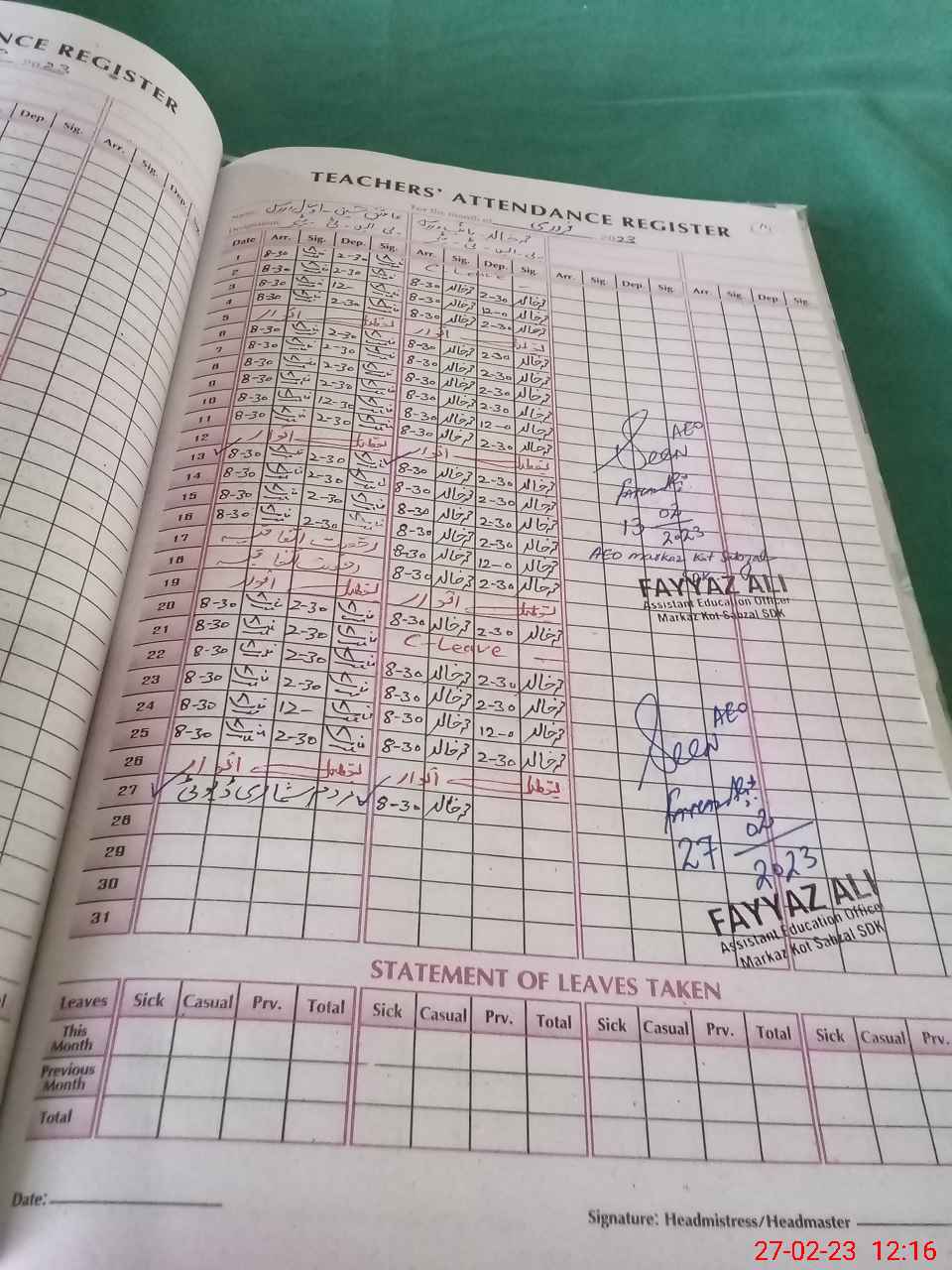 | Name: As**** Hu**** Designation: (School Headmaster's/Headmistress's) PST Phone/Cell Number: 03**** |