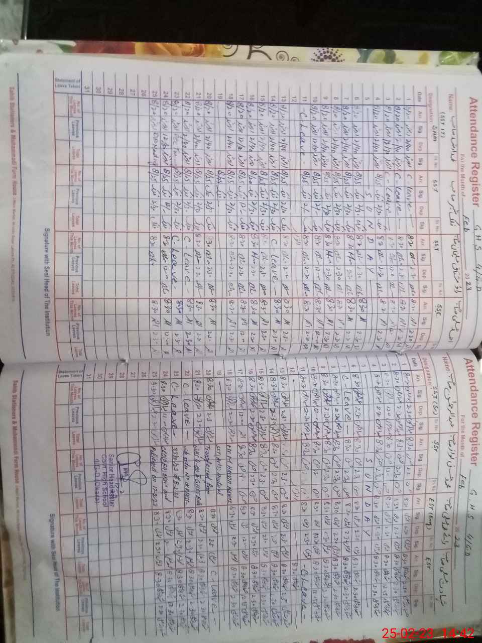 | CNIC | Full Name | Designation | R/C | Absence During Last Calender Month |
