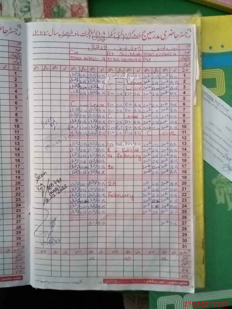 | CNIC | Full Name | Designation | R/C | Absence During Last Calender Month |