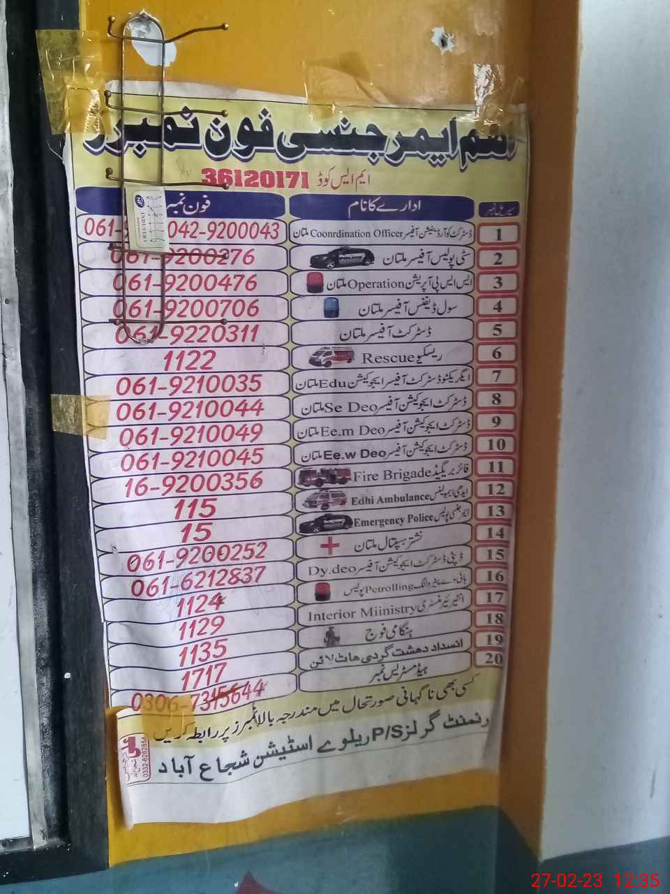 | EMIS Code: 36120171 | Name of School: GGPS RAILWAY STATION SHUJABAD | |||