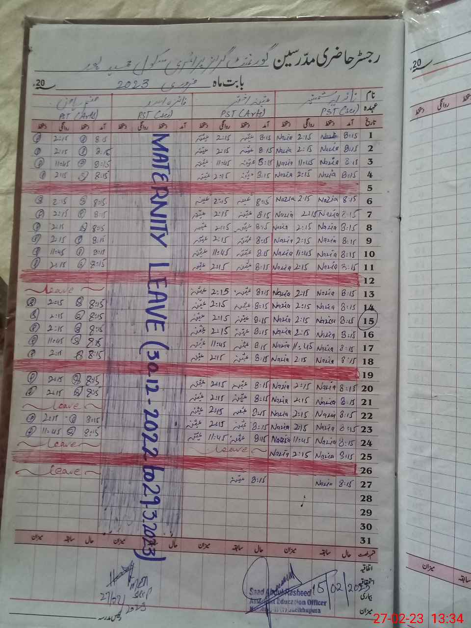 | Name: NA**** SH**** Designation: (School Headmaster's/Headmistress's) PST Phone/Cell Number: 03**** |