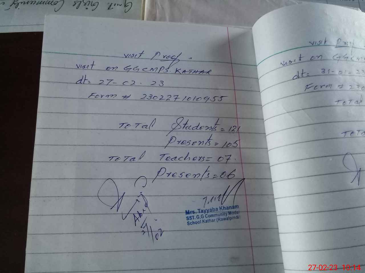 | Attendance Register | Head Teacher | MEA with School | Visit Proof |