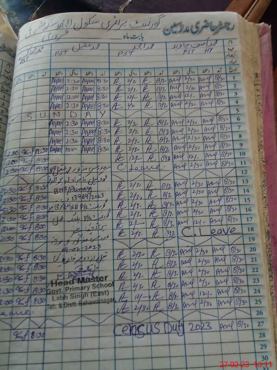| Name: Am**** Designation: (School Headmaster's/Headmistress's) PST Phone/Cell Number: 03**** |