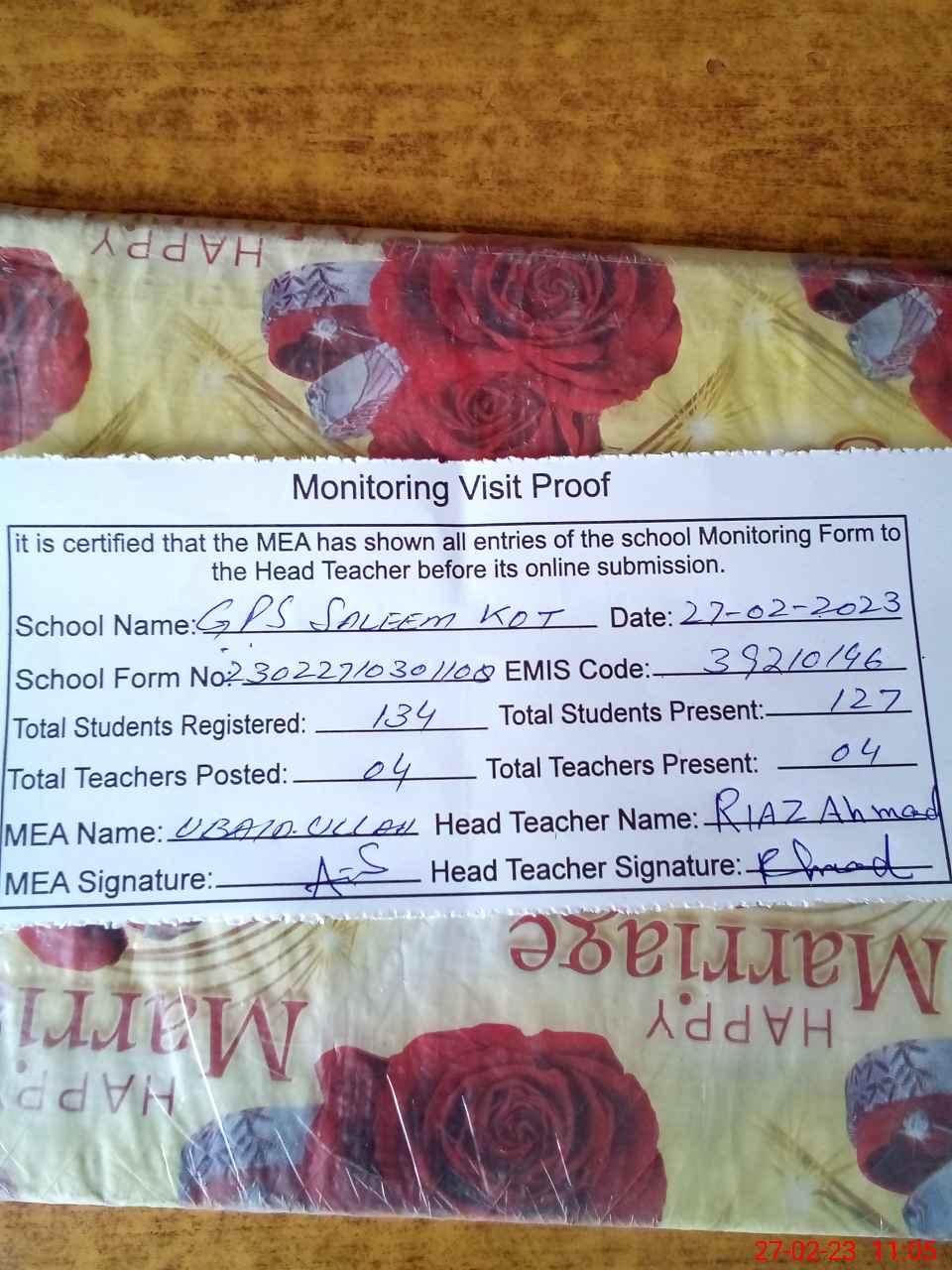 | EMIS Code: 39210146 | Name of School: GPS SALEEM KOT PAKPATTAN | |||