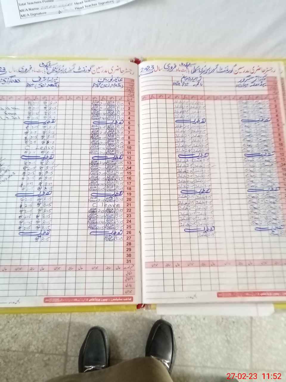 | Attendance Register | Head Teacher | MEA with School | Visit Proof |