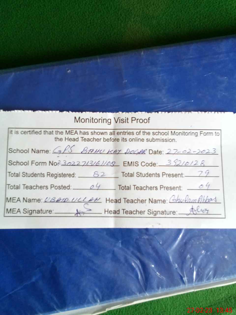 | EMIS Code: 39210128 | Name of School: GPS BAHU KEY DOGAR | |||