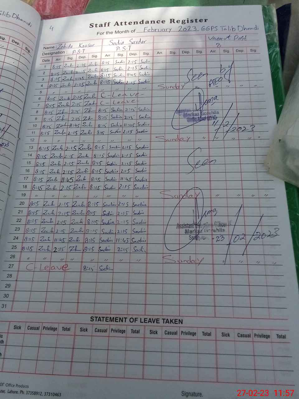 | Name: Sa**** Sa**** Designation: (School Headmaster's/Headmistress's) PST/PTC/JV Phone/Cell Number: 03**** |