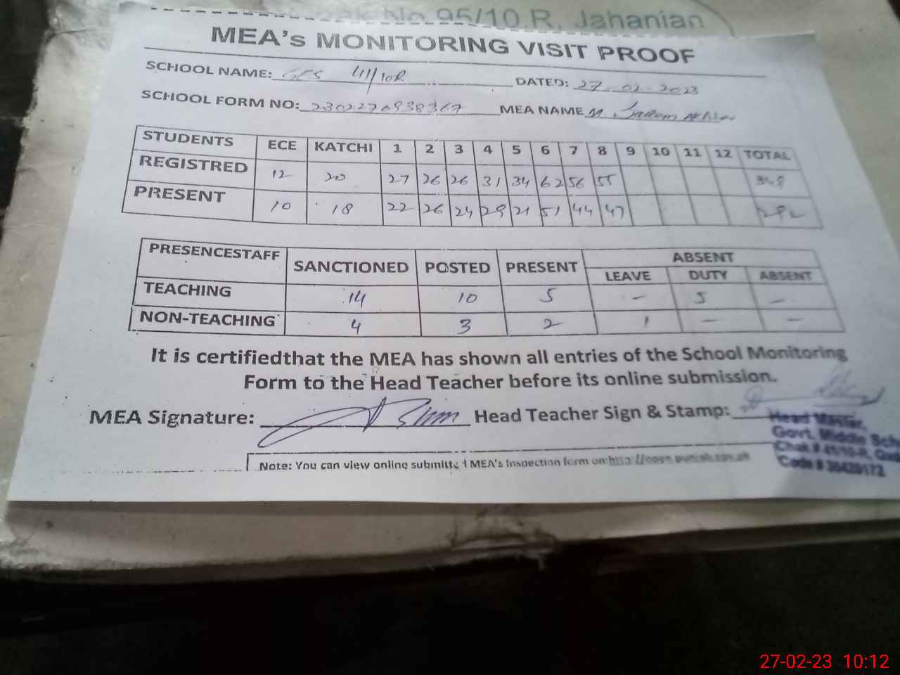 | EMIS Code: 36420172 | Name of School: GES 41/10-R QADEEM, KHANEWAL | |||