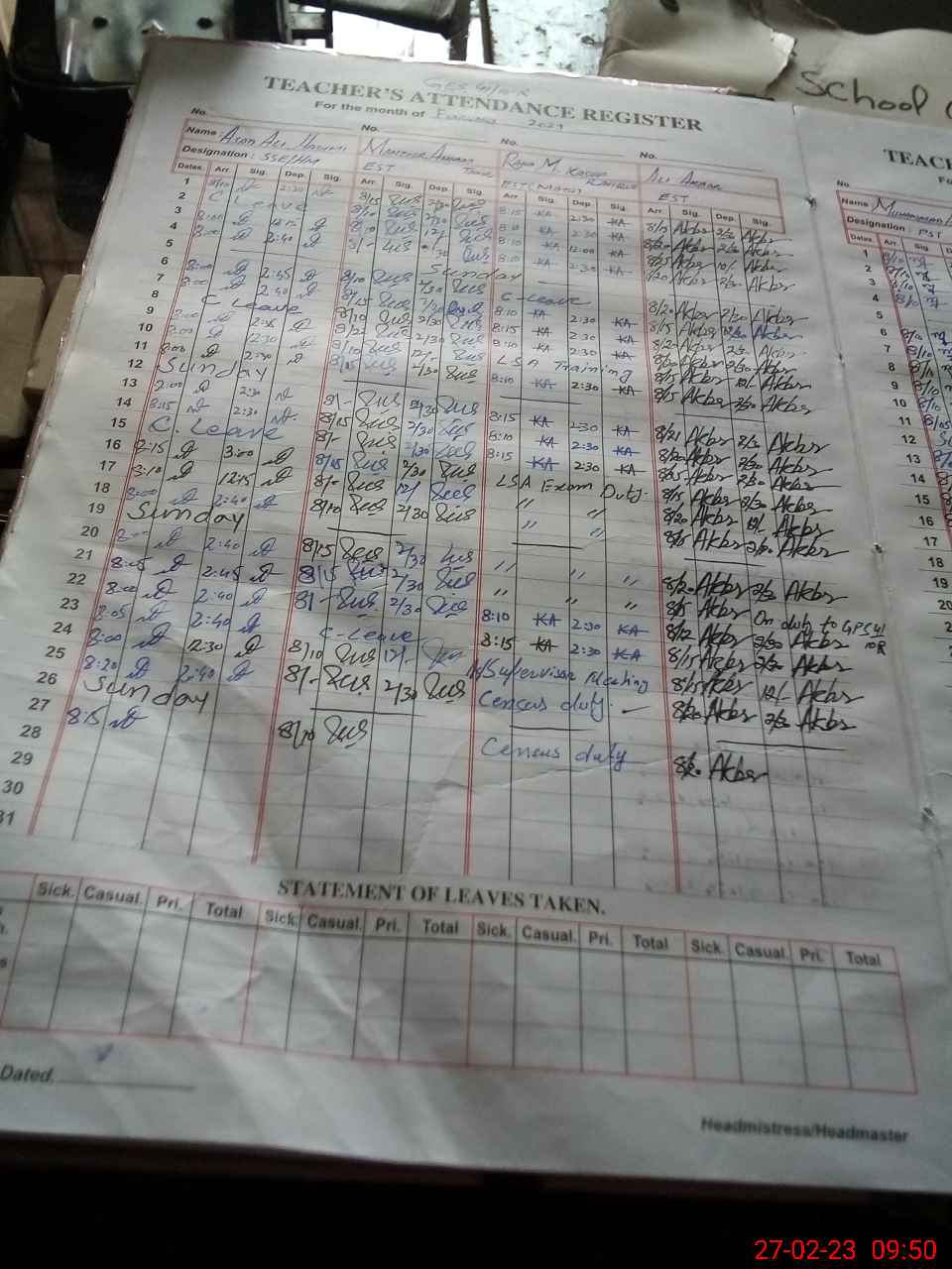 | Attendance Register | Head Teacher | MEA with School | Visit Proof |