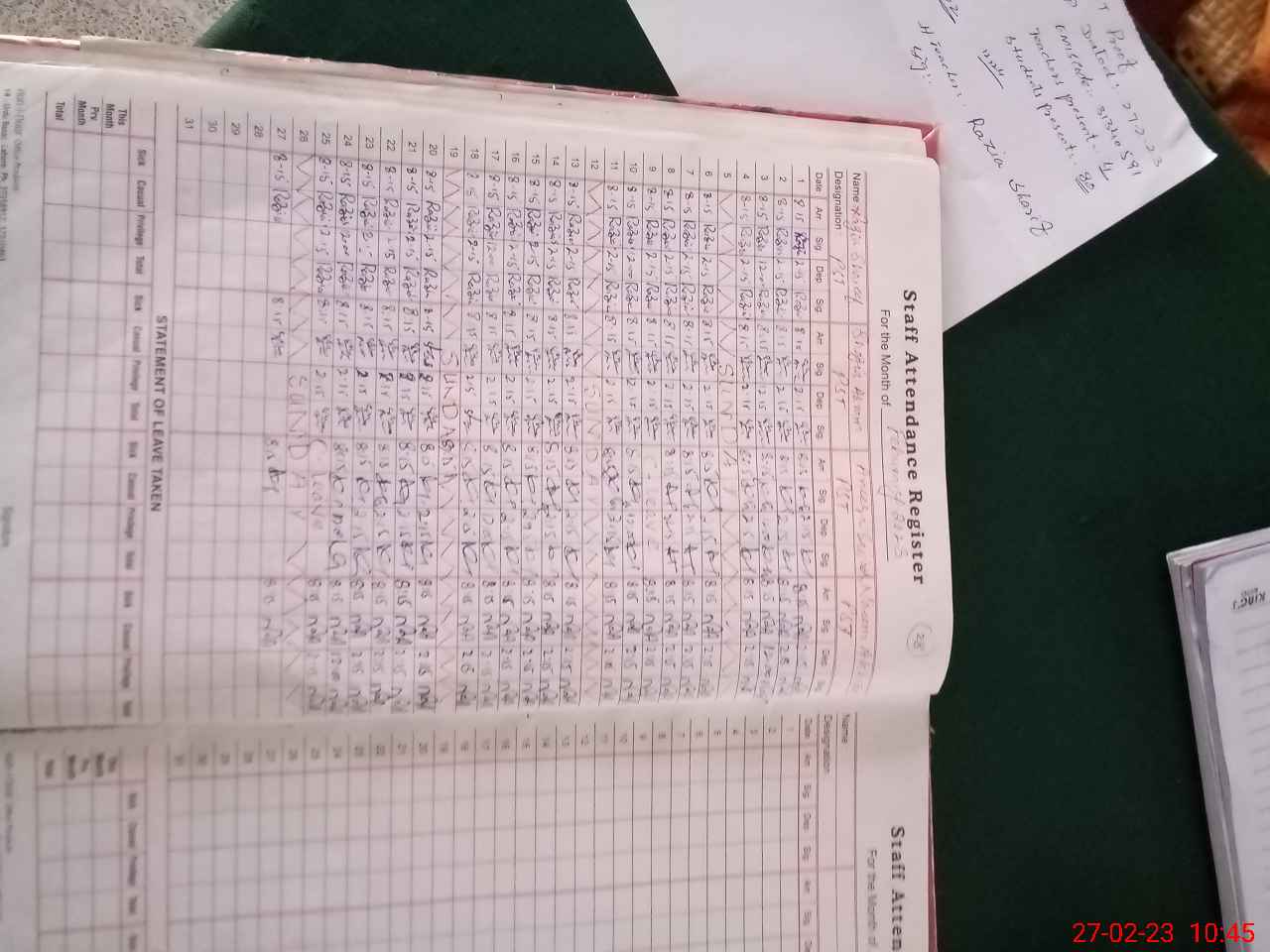 | Leave | Duty | Absent | Maternity | Medical | Ex- Pak |