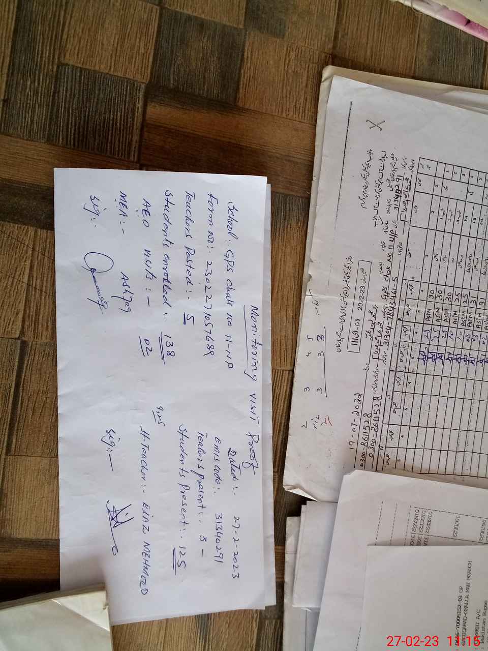 | EMIS Code: 31340291 | Name of School: GPS CHAK NO 11 NP | |||