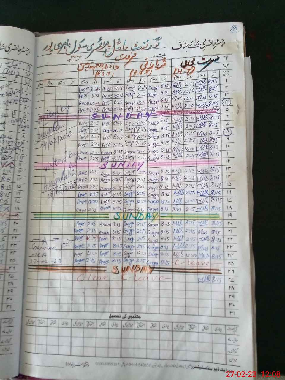 | CNIC | Full Name | Designation | R/C | Absence During Last Calender Month |