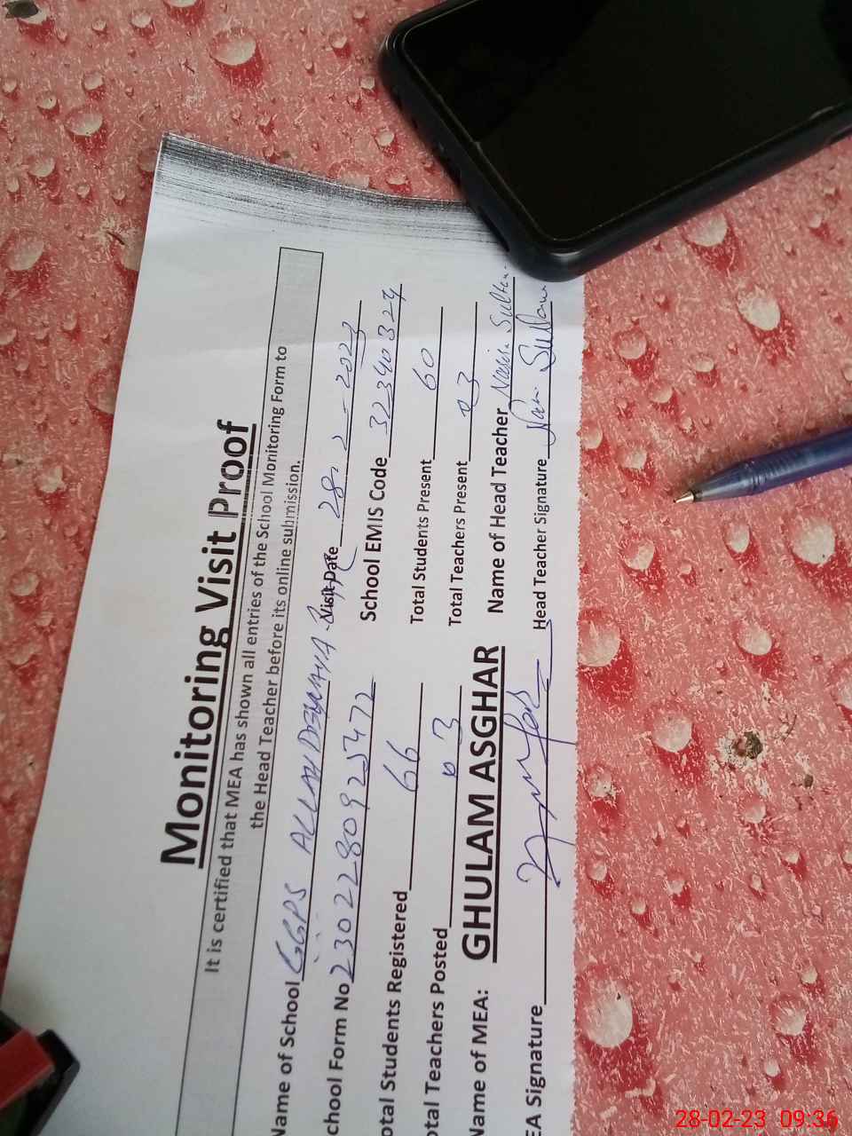 | EMIS Code: 32340324 | Name of School: GGPS ALLAH DIEWAYA LAR | |||