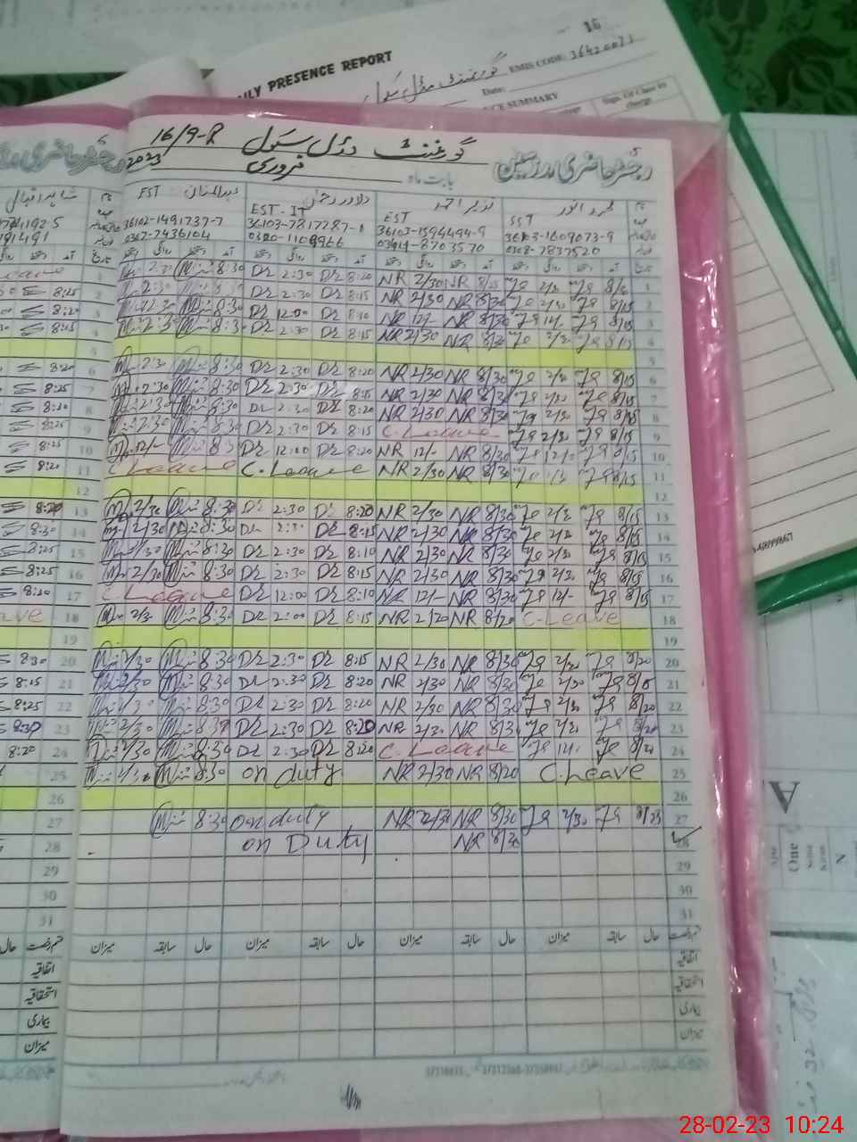 | CNIC | Full Name | Designation | R/C | Absence During Last Calender Month |