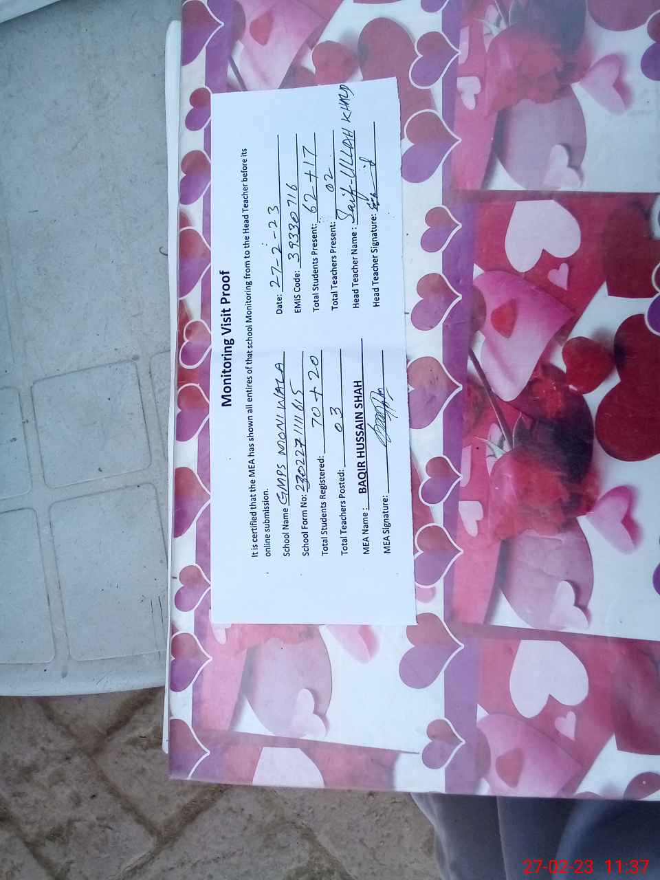 | EMIS Code: 39330716 | Name of School: GMPS MONI WALA | |||