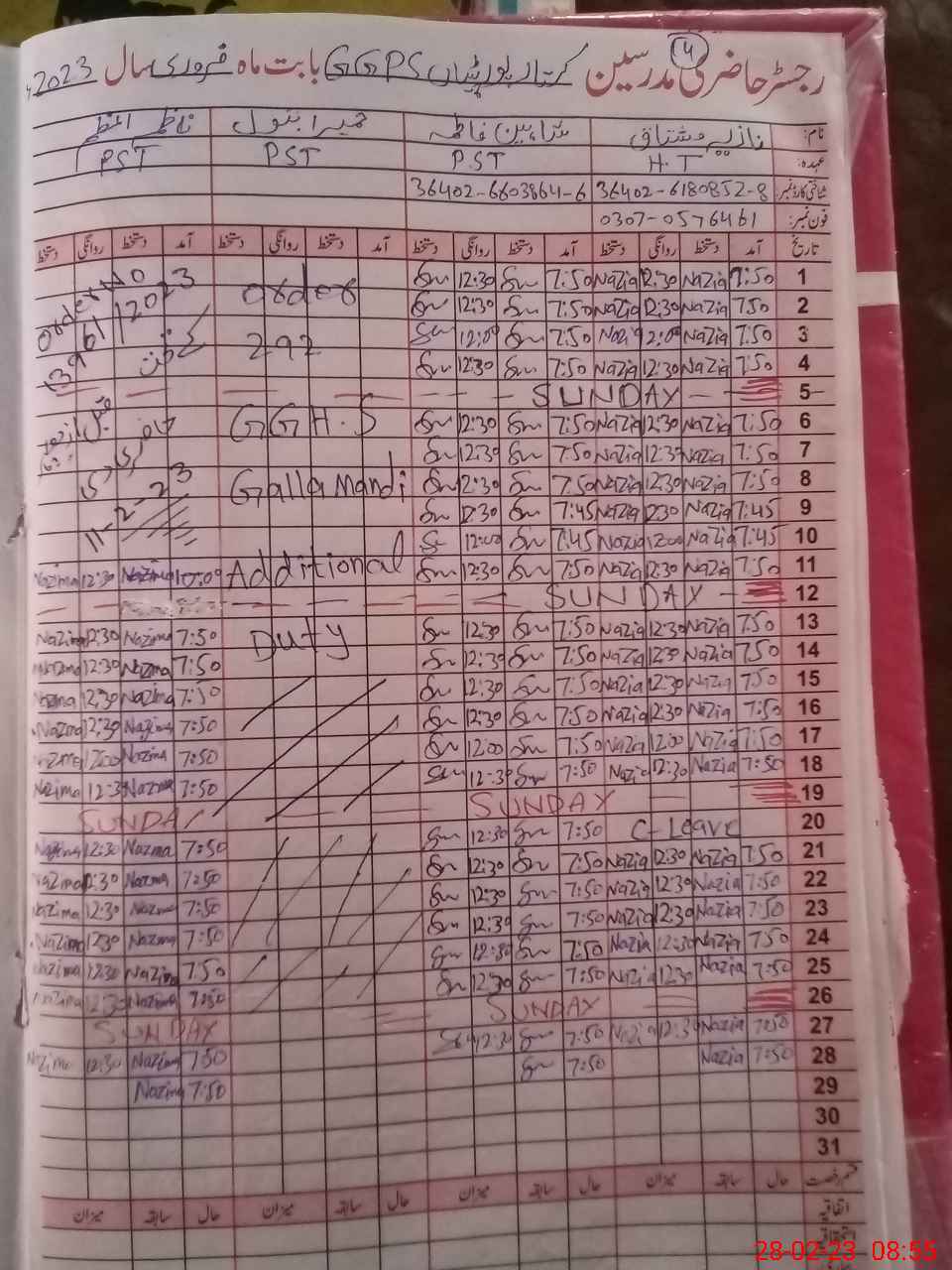| Name: Na**** Mu**** Designation: (School Headmaster's/Headmistress's) PST Phone/Cell Number: 03**** |