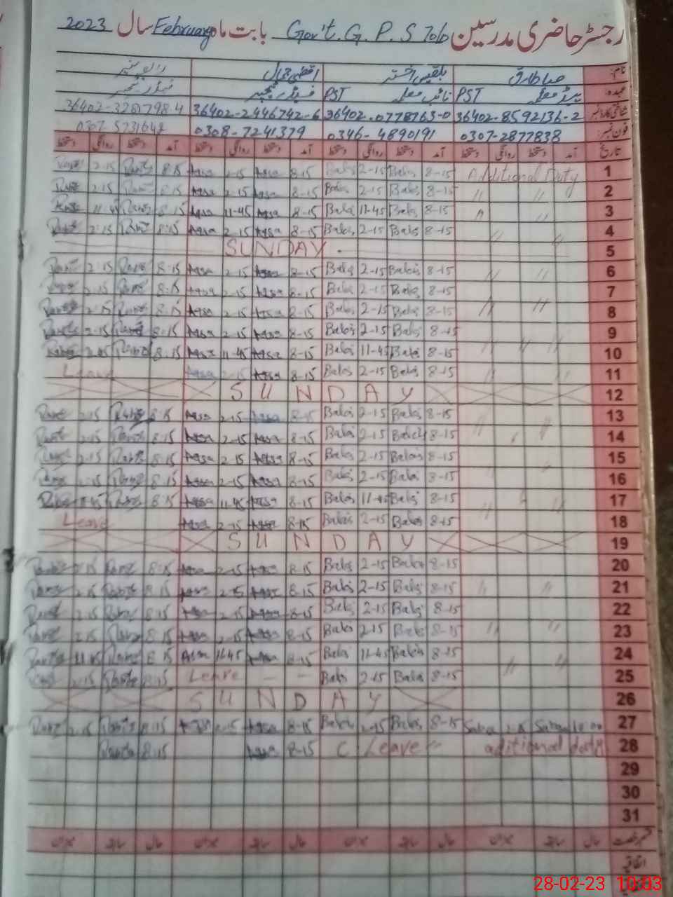 | Name: Ma**** Sh**** Designation: (School Headmaster's/Headmistress's) PST Phone/Cell Number: 03**** |