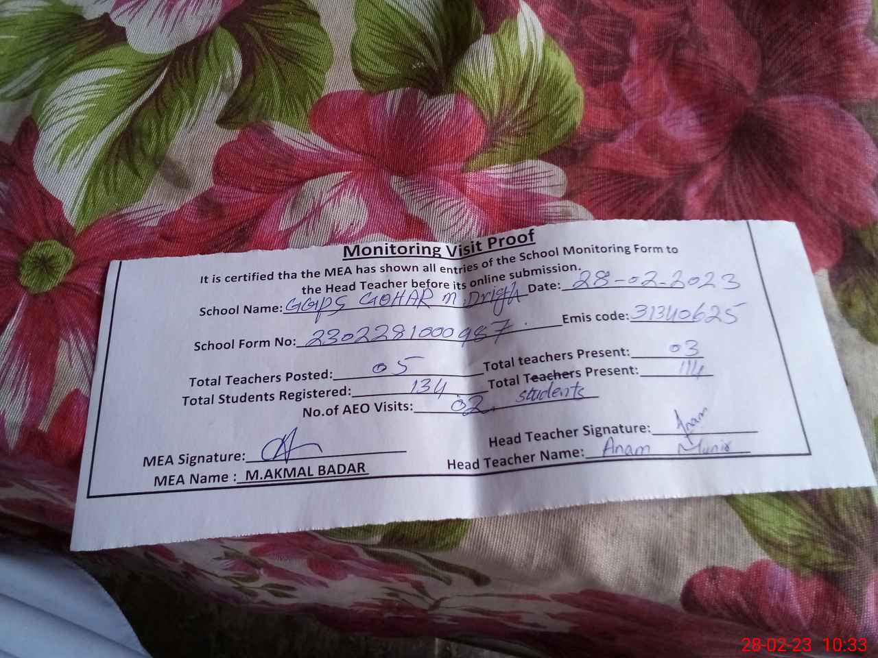 | EMIS Code: 31340625 | Name of School: GGPS GOHAR MUHAMMAD DRGH | |||