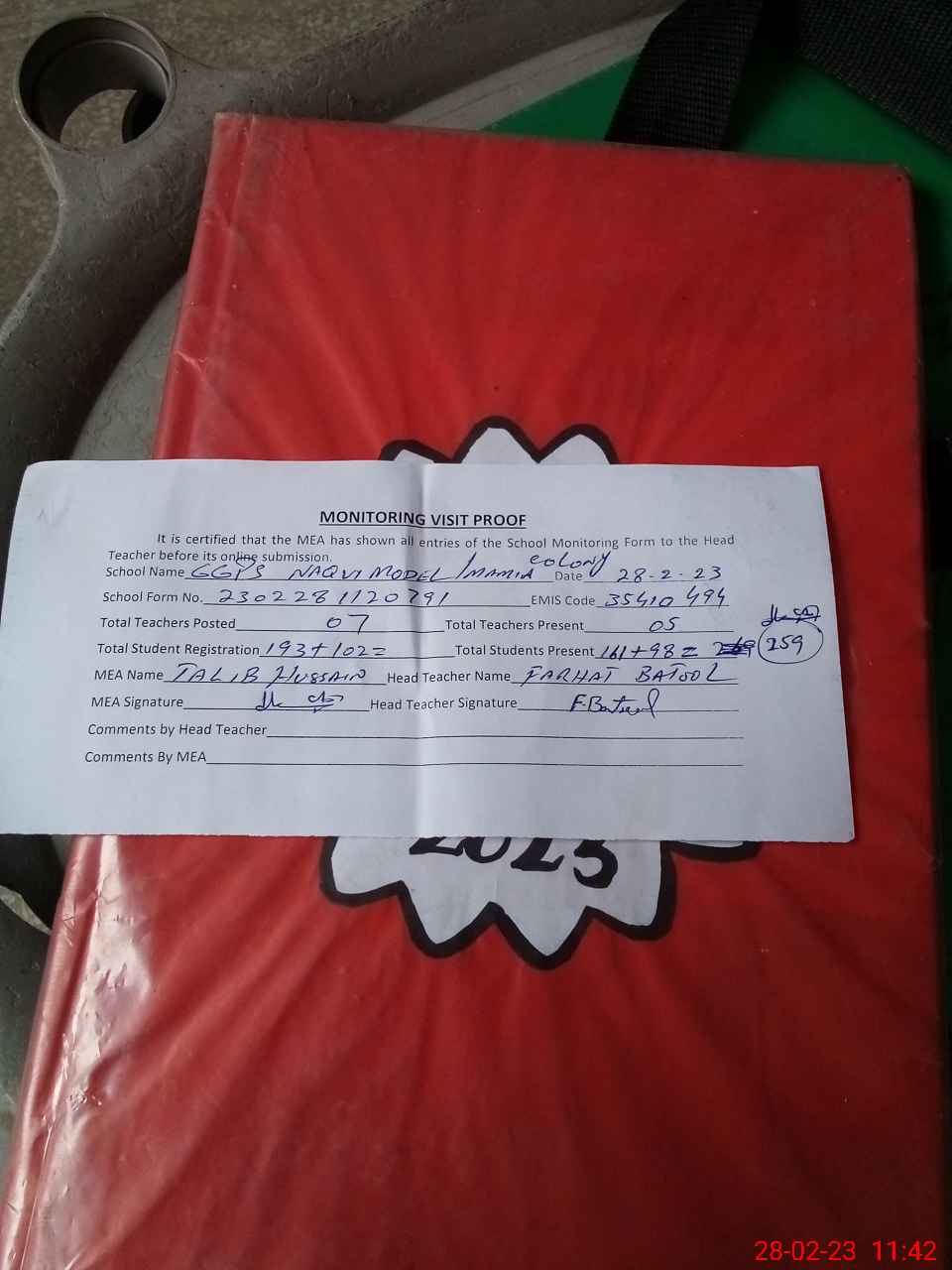 | EMIS Code: 35410494 | Name of School: GGPS NAQVI IMAMIA COLONY | |||