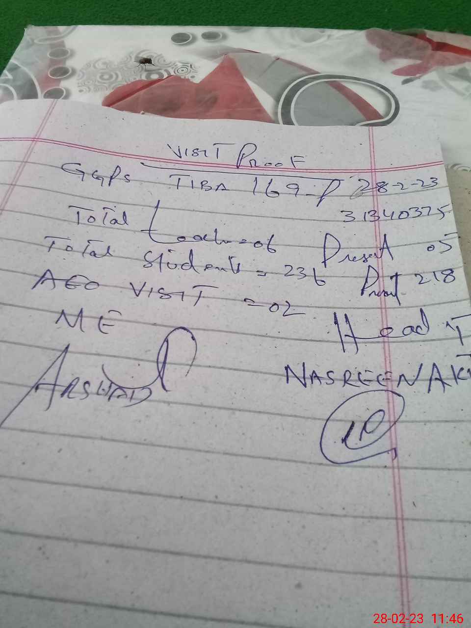 | Attendance Register | Head Teacher | MEA with School | Visit Proof |