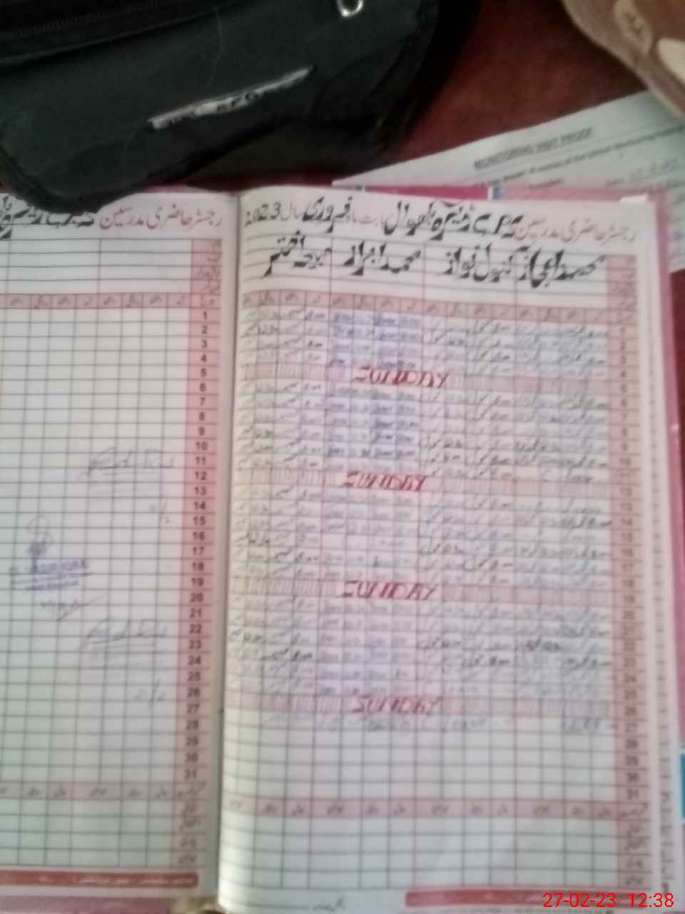 | CNIC | Full Name | Designation | R/C | Absence During Last Calender Month |