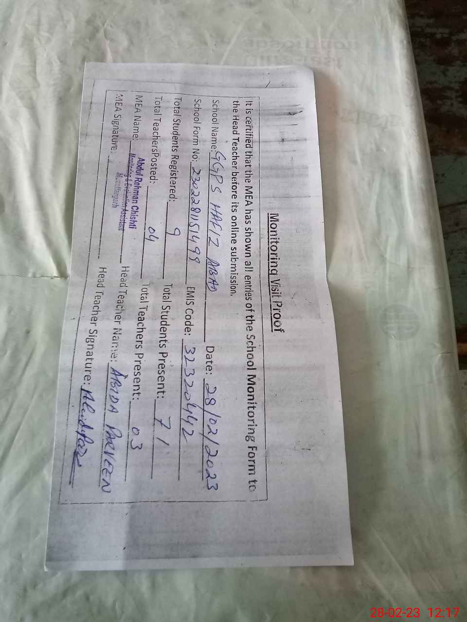 | EMIS Code: 32320442 | Name of School: GGPS HAFIZ ABAD | |||