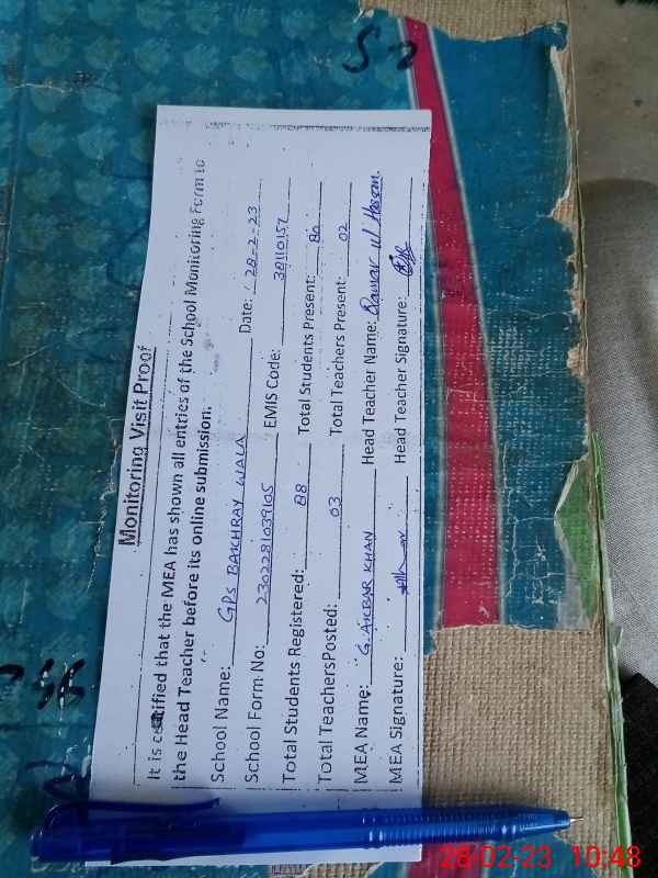 | Certified that this School was Inspected by the Undersigned MEA/DMO Today and the Information Stated Above is as Per Record. | |||||