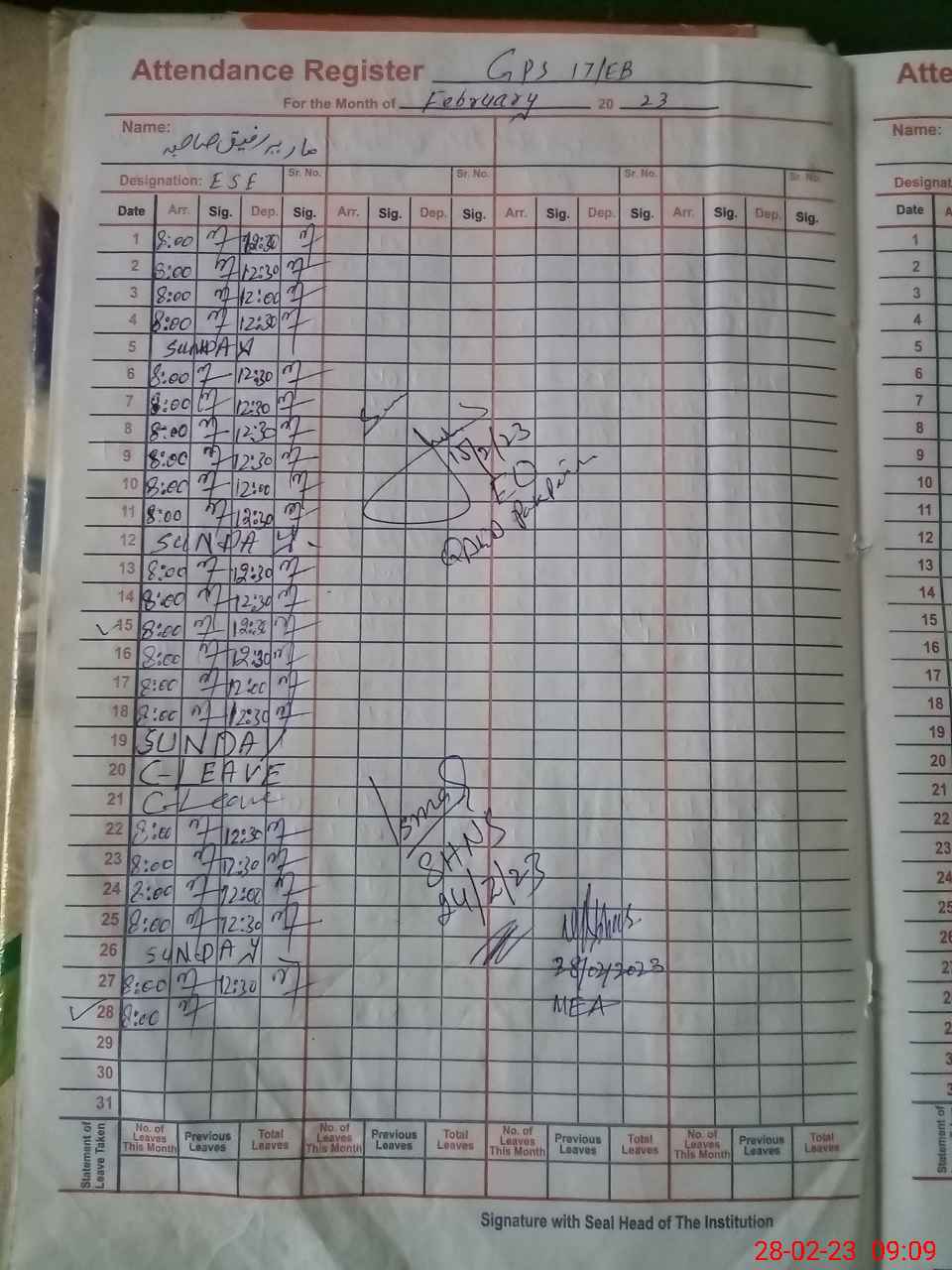 | Attendance Register | Head Teacher | MEA with School | Visit Proof |