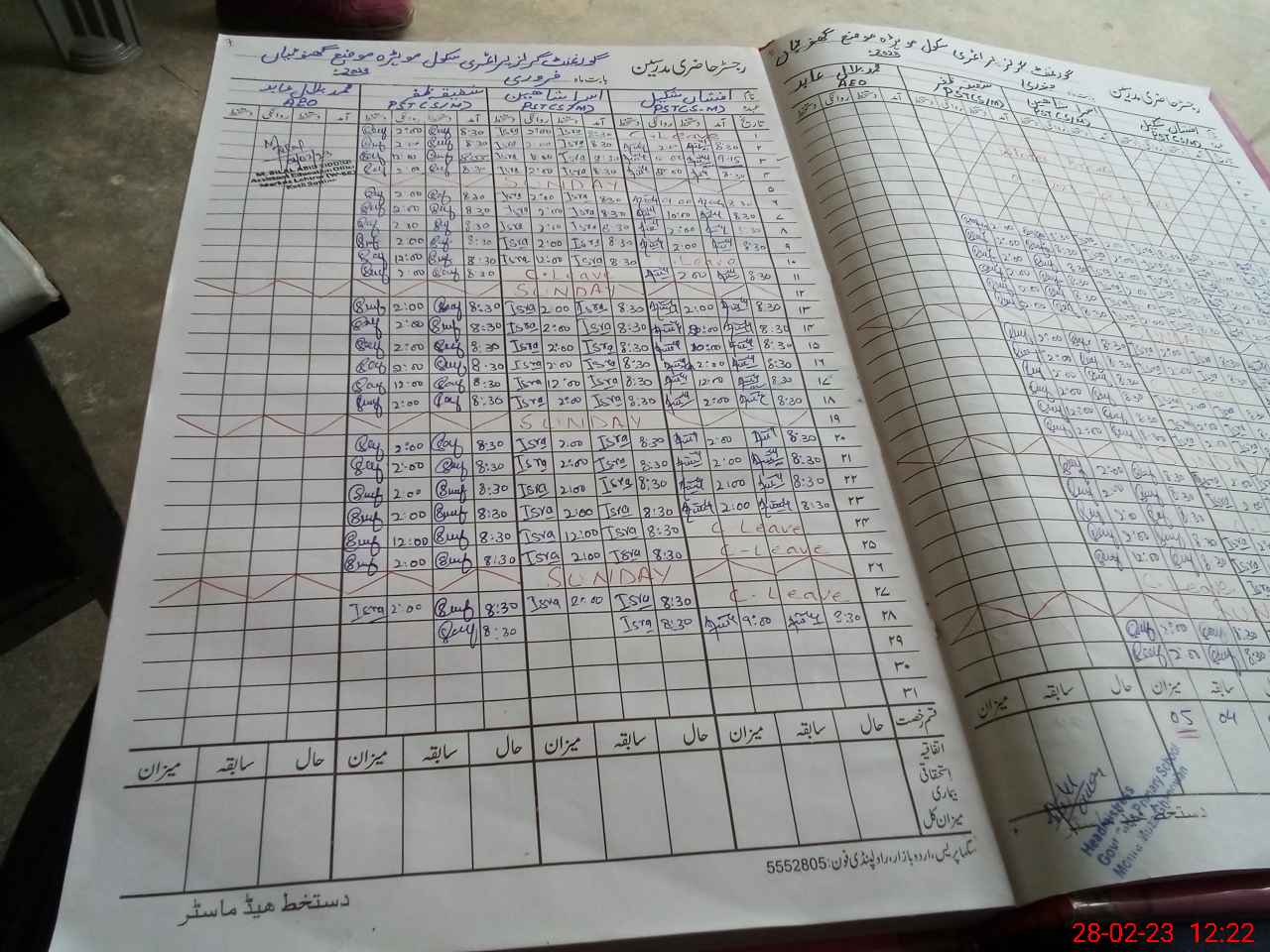 | Name: Af**** Sh**** Designation: (School Headmaster's/Headmistress's) PST Phone/Cell Number: 03**** |