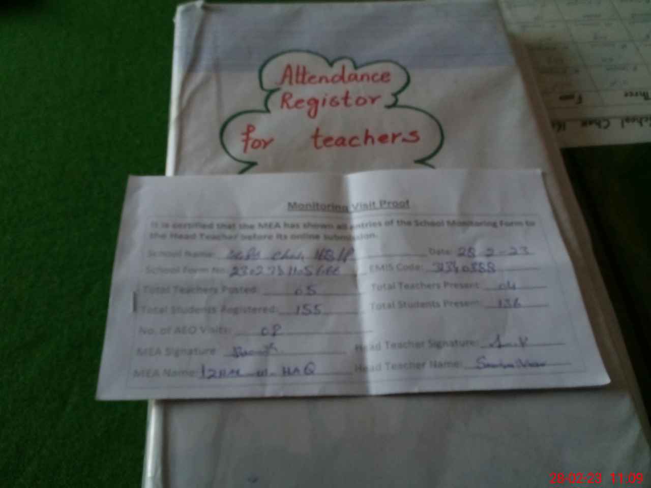 | Attendance Register | Head Teacher | MEA with School | Visit Proof |