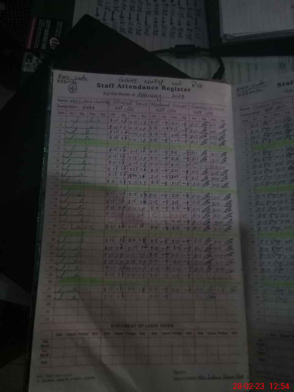 | 31**** | Zu**** Na**** | PST | Regular | 1 | 0 | 0 | 0 | 0 | 0 | 0 | 0 | 1 | Casual |