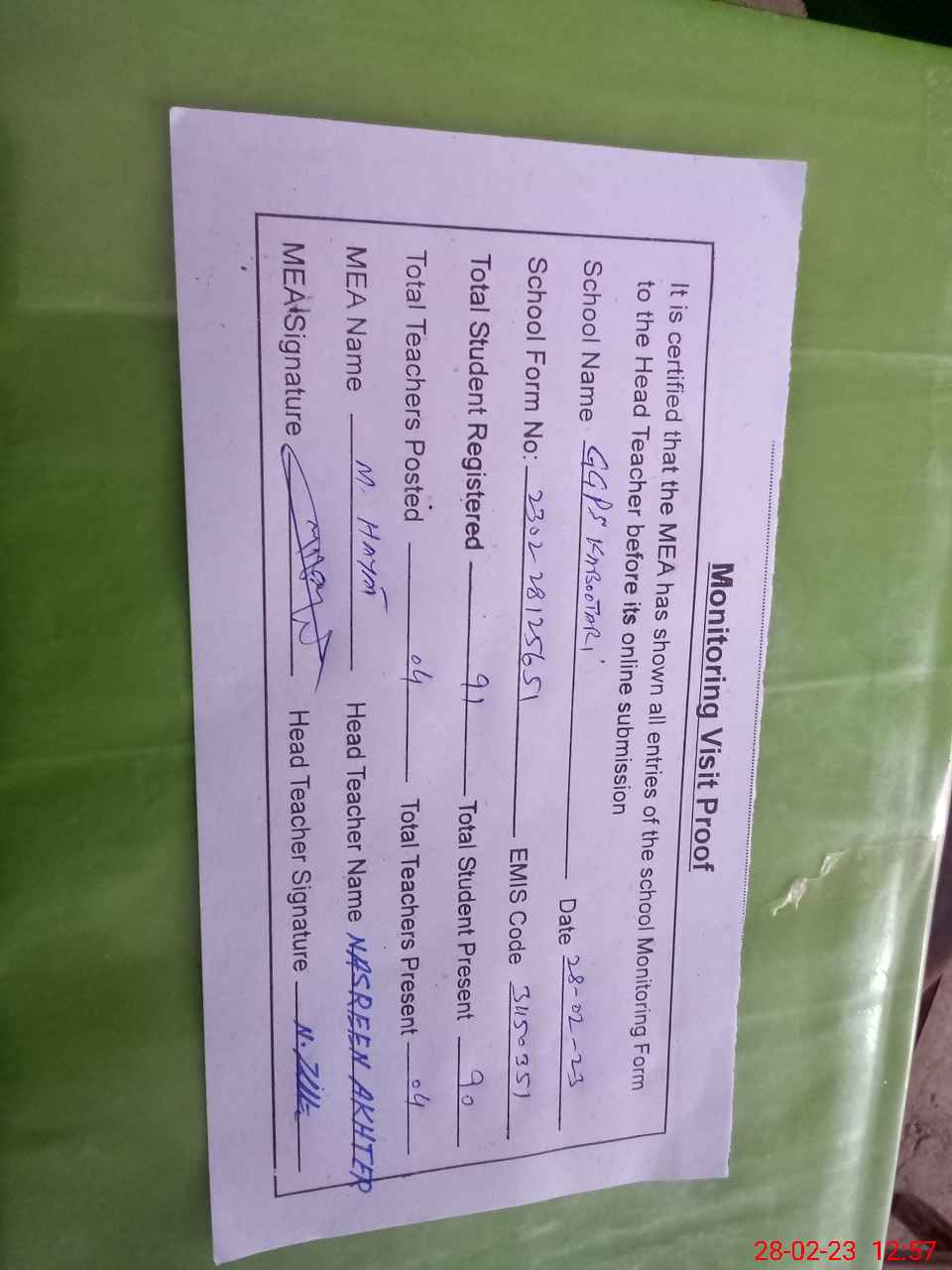 | EMIS Code: 31150351 | Name of School: GGPS KABOOTRI NO. 1 | |||