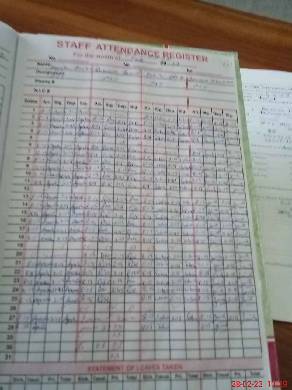 | CNIC | Full Name | Designation | R/C | Absence During Last Calender Month |
