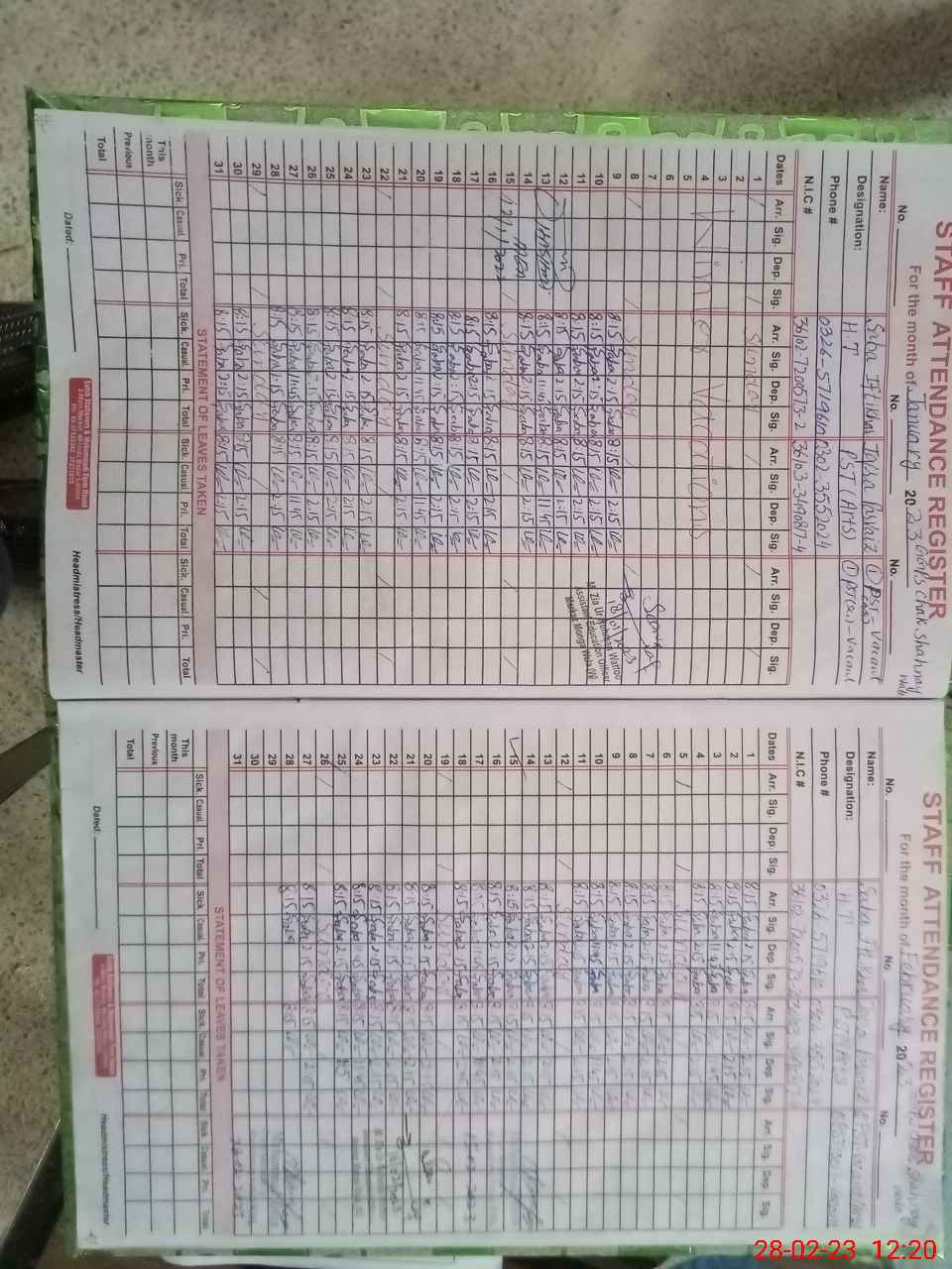 | Name: SA**** IF**** Designation: (School Headmaster's/Headmistress's) ESE (SCI-MATH) Phone/Cell Number: 03**** |
