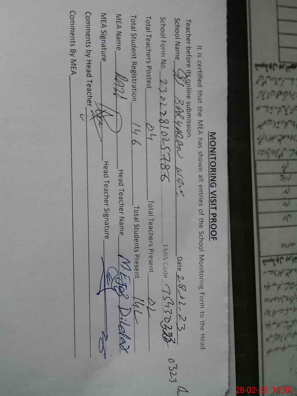 | Certified that this School was Inspected by the Undersigned MEA/DMO Today and the Information Stated Above is as Per Record. | |||||
